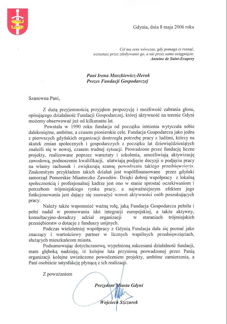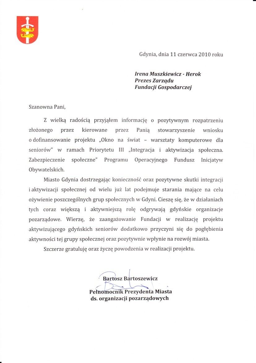 Atrykuł "Fundacja Gospodarcza - miejsce przyjazne mieszkańcom Gdyni", który ukazał się 24.06.2011 r. w Polska Dziennik Bałtycki (Dziennik Gdyński)
