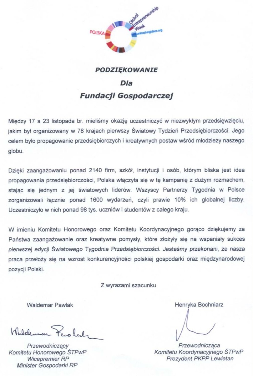 Artykuły "Fundacja Gospodarcza wspiera przedsiębiorczych", który ukazał się w sierpniu 2012 r. w magazynie 4BIZNES (Z REGIONU POMORZE)